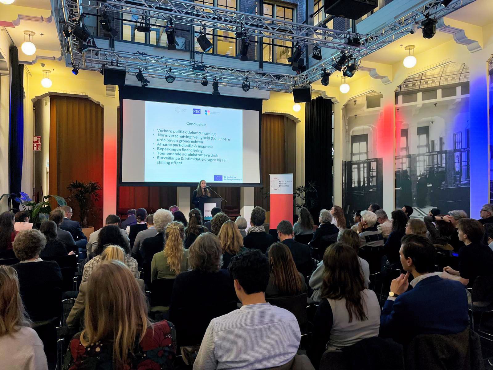 The findings of the MACS report, which were presented by Aicha Chaghouani from NHC, indicate several concerning developments. These include a political discourse in which watchdog CSOs and peaceful activists are framed as disruptive, radical or extremist. Critical CSOs and protest movements are increasingly targeted by motions – receiving a parliamentary majority – that invites the government to adopt measures that violate their rights. A growing number of legislative proposals may restrict fundamental rights without a clear justification of effectiveness, necessity, or proportionality. The fact that these motions and laws are introduced and supported by a wide group of political parties, including the traditionally centrist parties, illustrates the concerning weakening of democratic norms that Professor de Lange also points to. In addition, CSOs face rising administrative burdens, funding constraints, and in some cases, intimidation and surveillance that can create a chilling effect on activism.