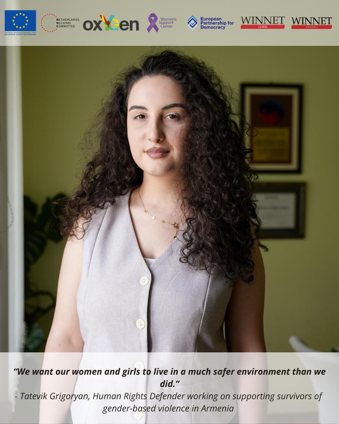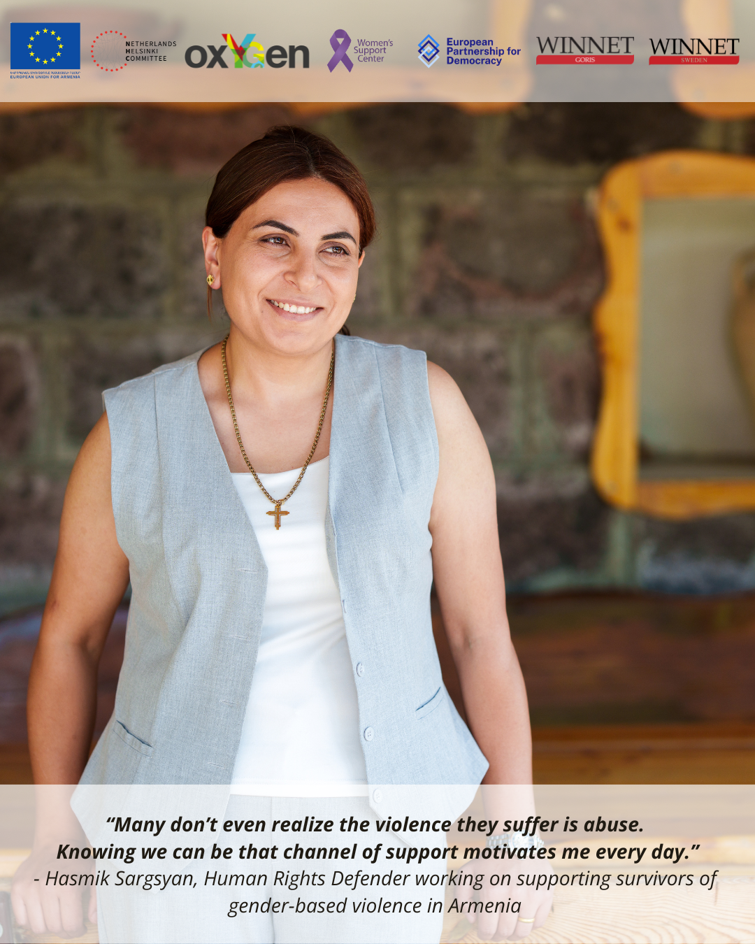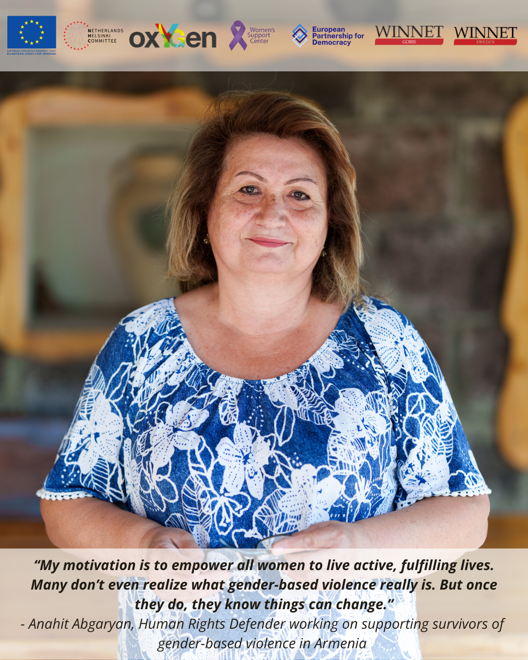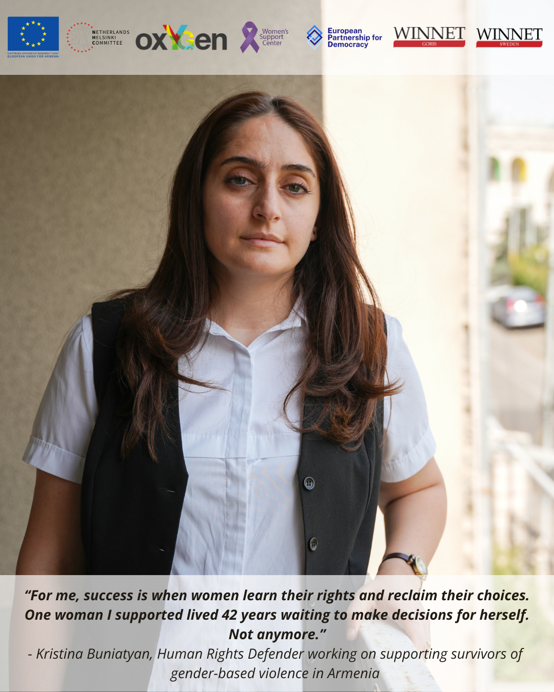 Starting on 01 October – the National Day Against Domestic Violence in Armenia – and continuing over the course of two weeks, the campaign features six portraits, quotes, and stories of women human rights defenders (HRDs) working across Armenia to combat domestic and gender-based violence. Each post showcases the experiences of advocates, highlighting not only the challenges of their work but also their resilience, motivation, and, most importantly, specific steps for change. The campaign aims to bring international solidarity and public attention to the work and calls to action of the advocates who have dedicated their lives to building pathways to equality and justice.